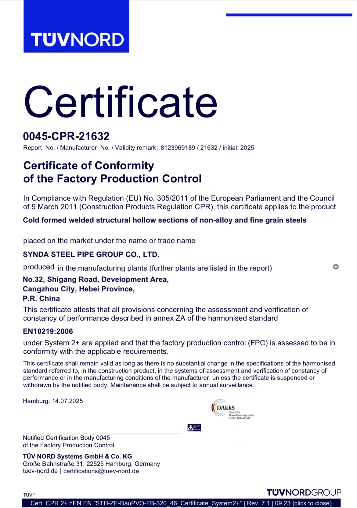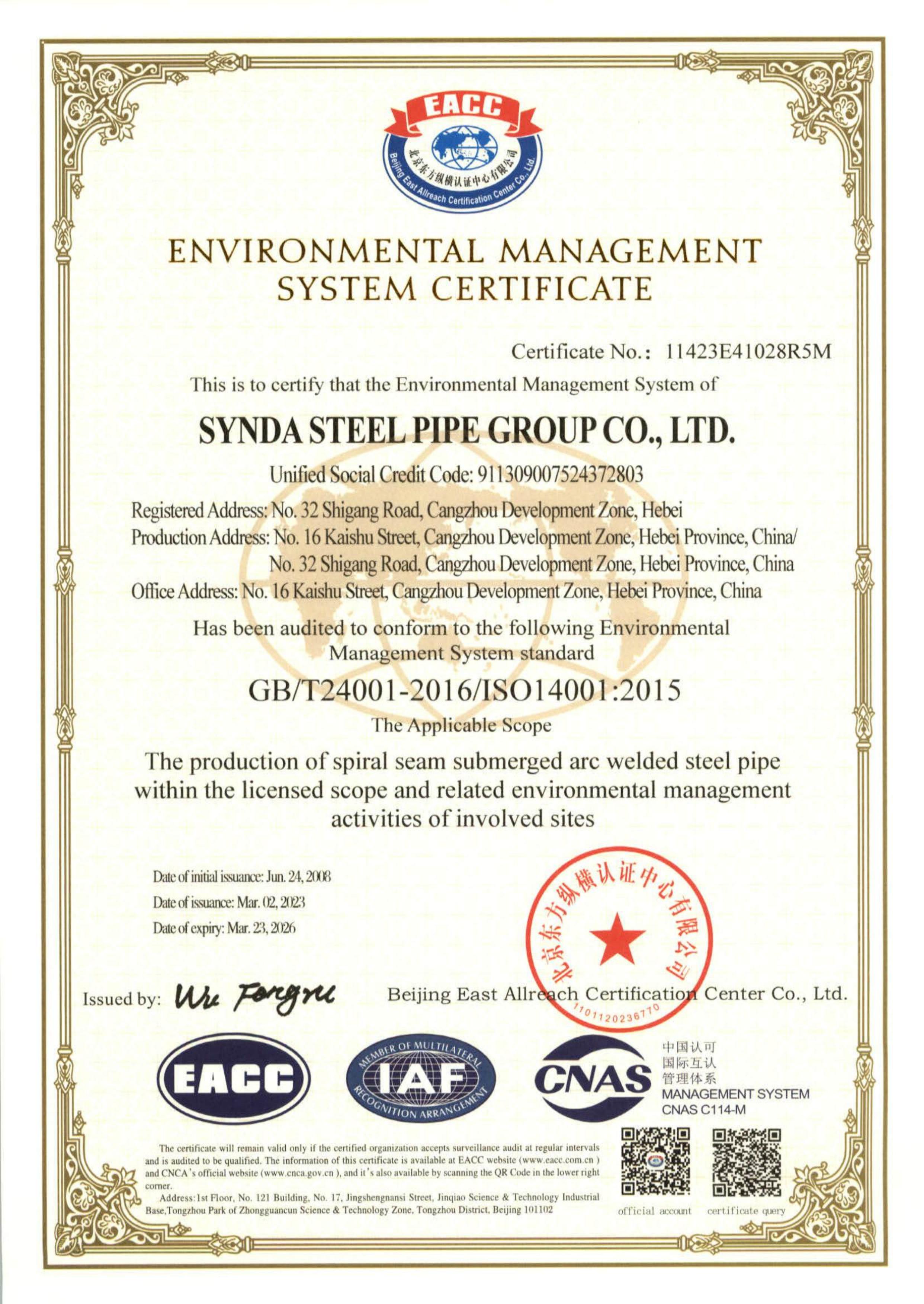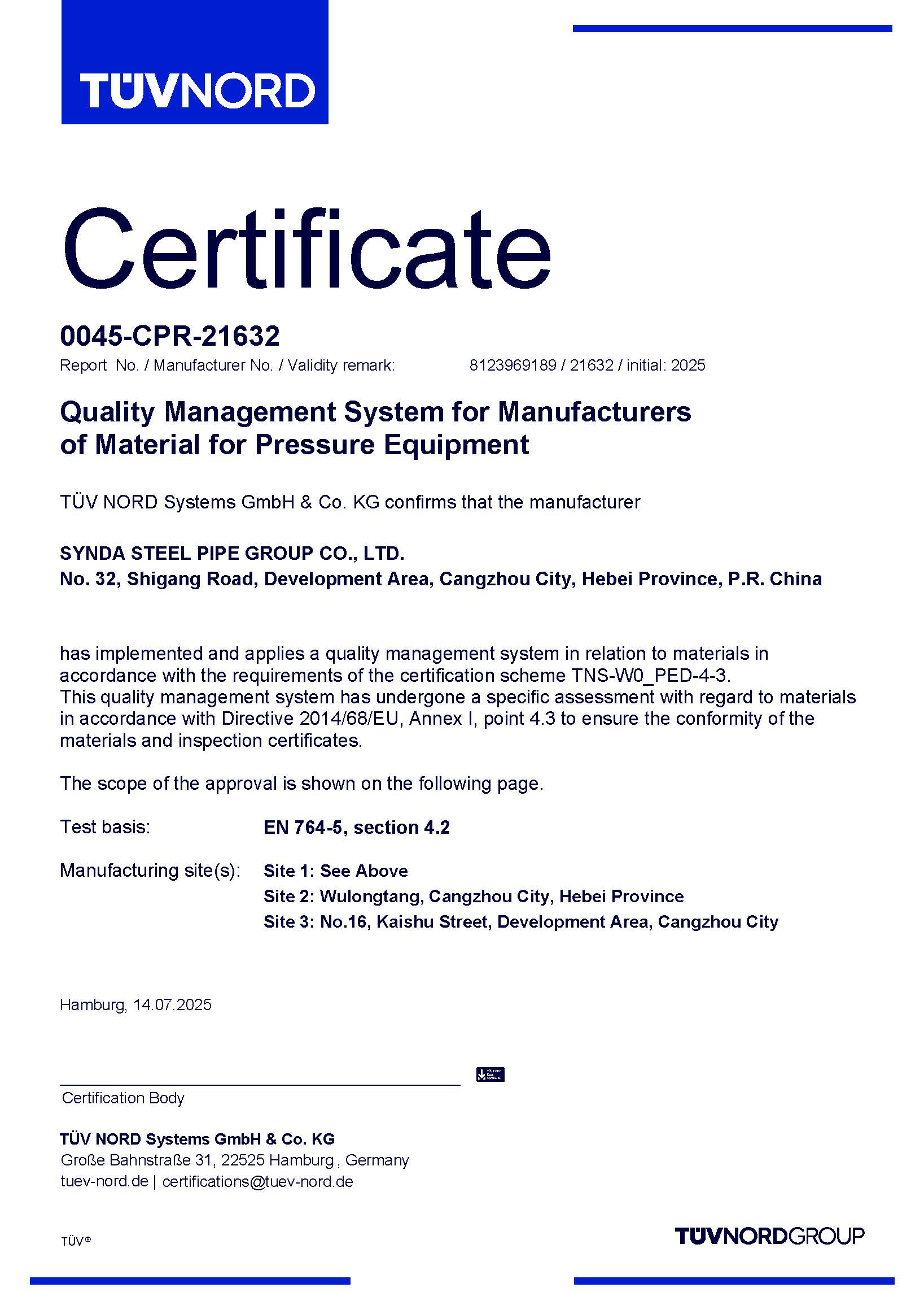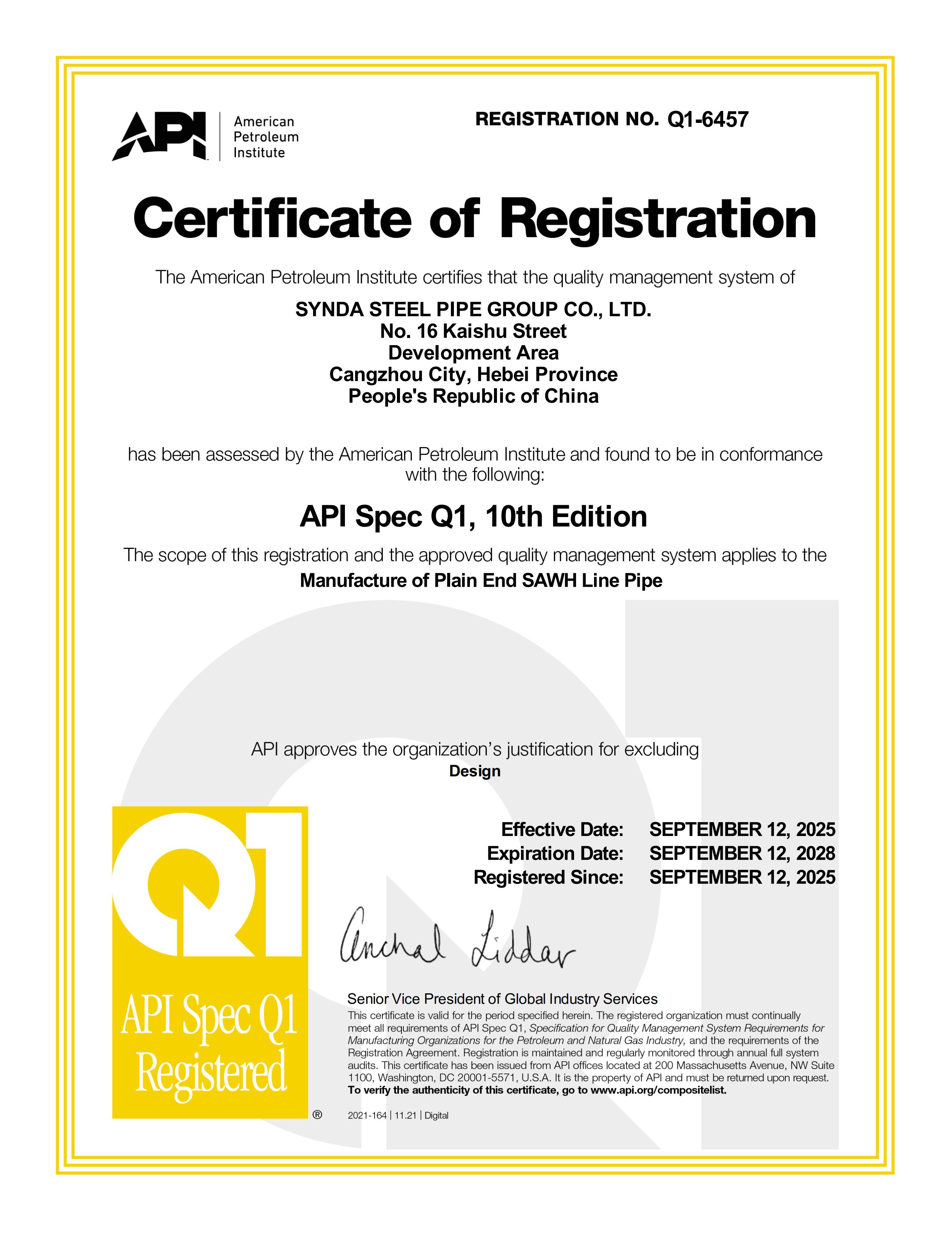 Synda Steel Pipe Group Co., Ltd. was established in July 2003 and is located in Cangzhou Economic Development Zone, Hebei Province, China. It covers an area of 400,000 square meters and has a registered capital of 181 million yuan. It is an industrial and commercial enterprise that integrates the production and anti-corrosion processing of spiral steel pipes, as well as the operation and sales of seamless steel pipes, coils, strip steel and other types of steel. The company currently has over 400 employees, including more than 120 personnel with intermediate and senior technical titles.